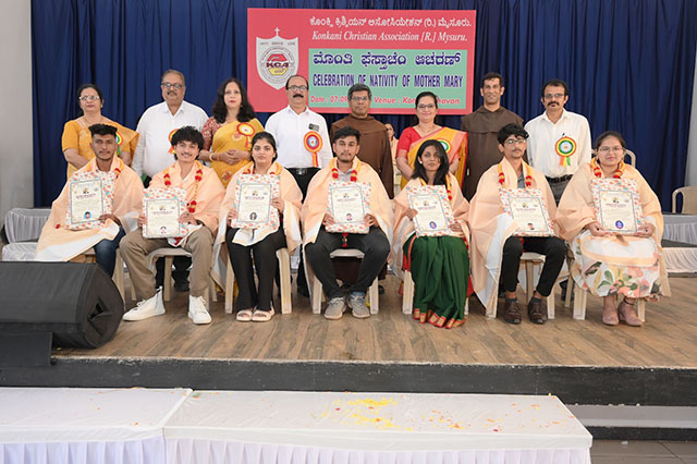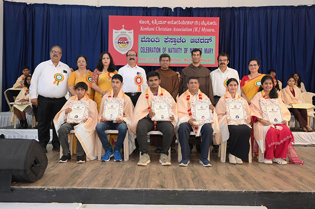 Mysuru, Sep 9: The Konkani Christian Association, celebrated the Feast of the Nativity of Mother Mary—popularly known as Monthi Fest—with great devotion and enthusiasm on Sunday, September 7 in its very own Konkan Bhavan, Vijayanagar 2nd Stage, Mysuru.