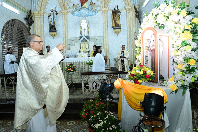 The Triduum was observed on September 28, 29, and 30, preparing the faithful for the feast. On the feast day, October 1, the Eucharistic Adoration was prayerfully led by Fr Ligoury Crasta, creating a deeply spiritual atmosphere before the Solemn Eucharistic celebration.