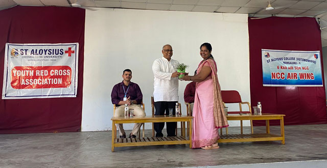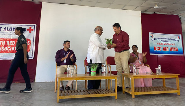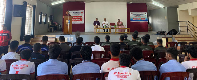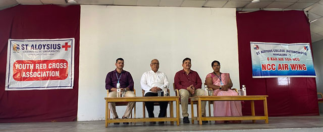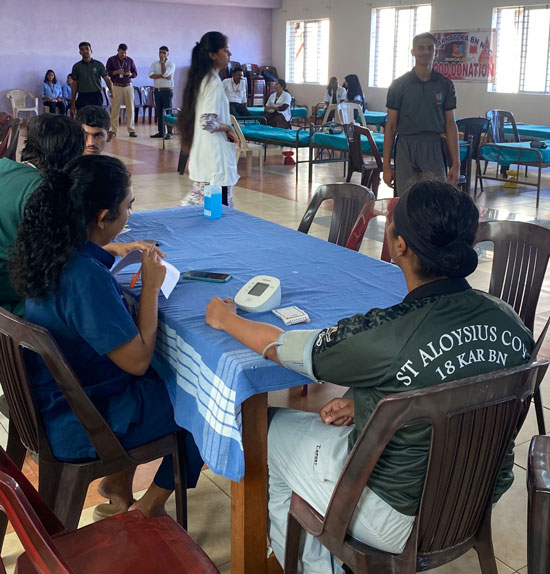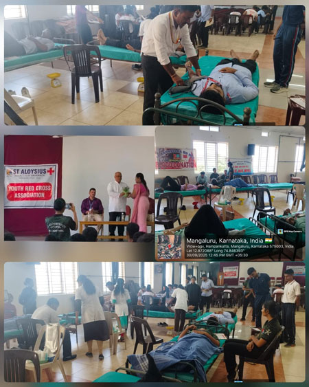 Mangaluru, Oct 3: On the occasion of National Blood Donors Day and Gandhi Jayanthi, the NCC Wings and the Youth Red Cross Association of St Aloysius (Deemed to be University), Mangaluru, in collaboration with the Regional Blood Transfusion Centre, District Wenlock Hospital, Mangaluru, organized a blood donation camp on September 30.