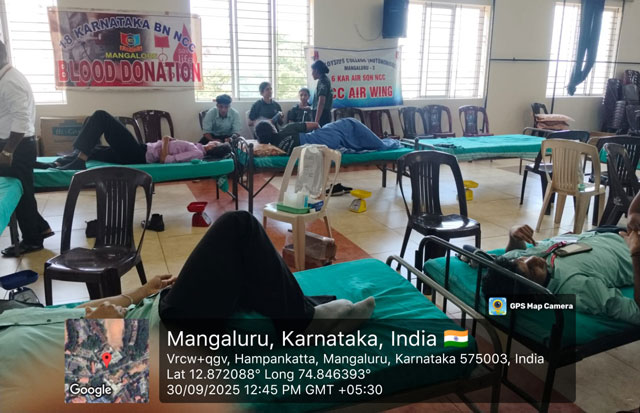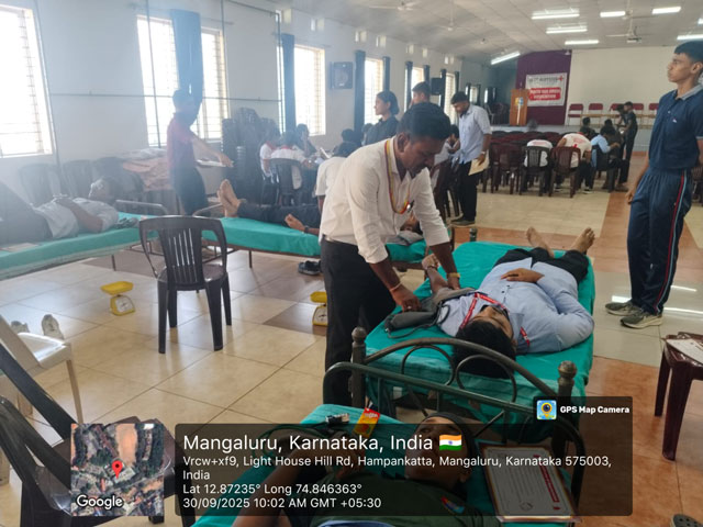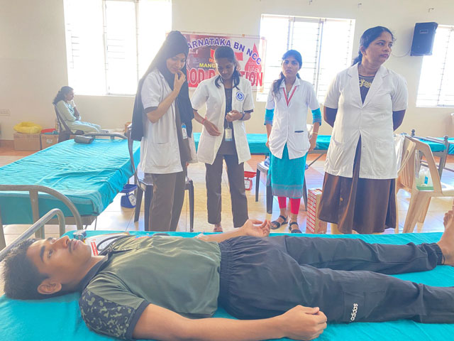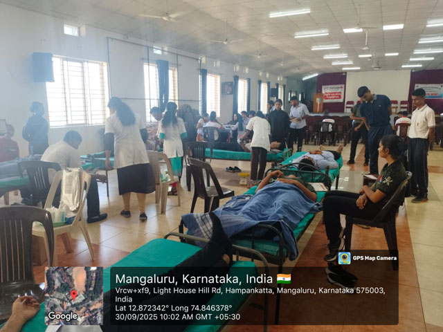 A total of 76 units of blood was collected from students, staff, and NCC cadets. The camp was inaugurated by Dr Sharath Kumar, head of the Department, Wenlock Blood Bank. pro-vice chancellor Dr Melwyn D'Cunha SJ, presided over the programme.