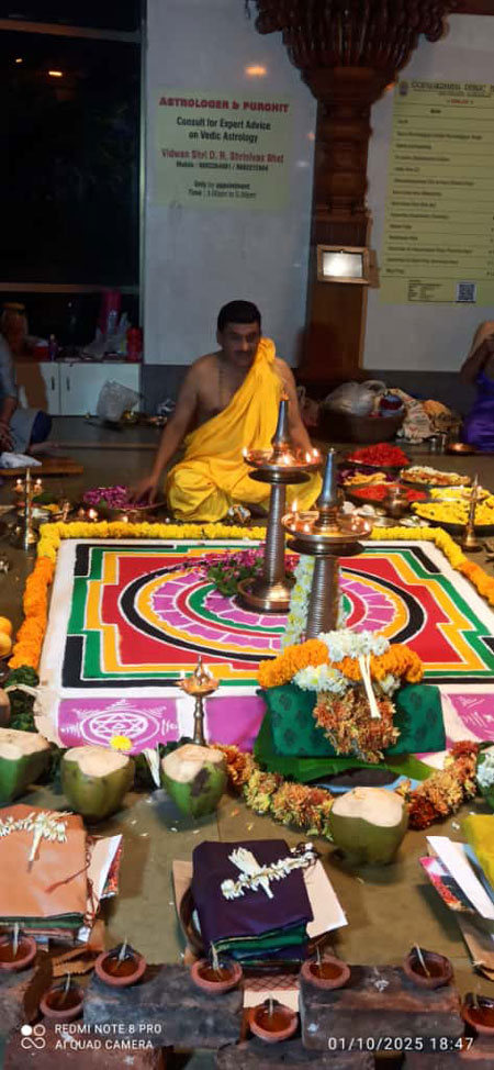 On the occasion of Saraswati Puja, an image of Goddess Sharada along with sacred scriptures was placed, and devotional hymns and stotras were rendered by Gokula Bhajana Mandali and surrounding bhajana groups. Ramavittal Kalluraya offered mangalarati to Goddess Sharada.