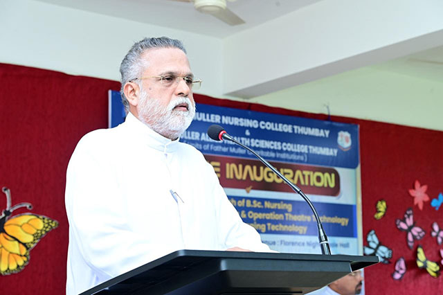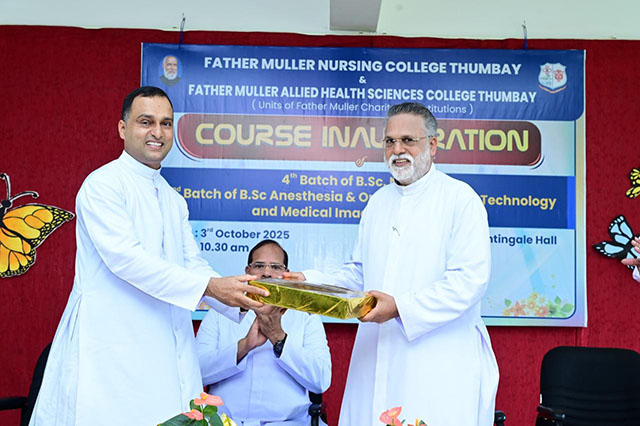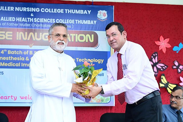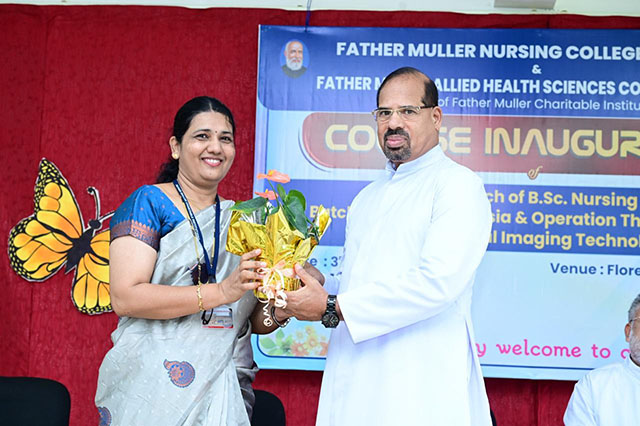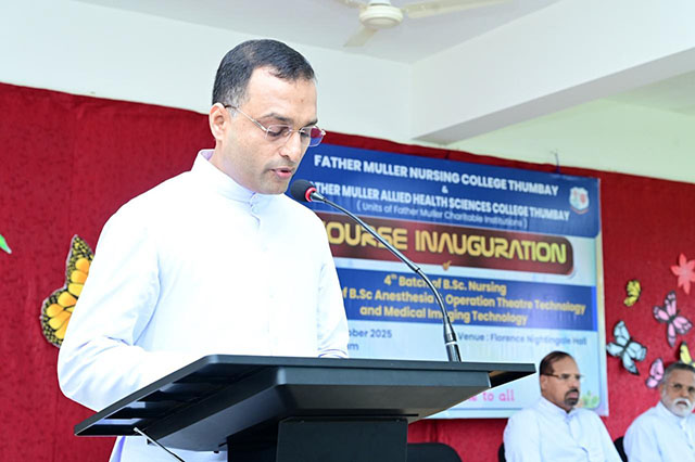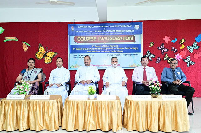 Mangaluru, Oct 3: The course inauguration ceremony of the 4th batch of BSc Nursing, 2nd batch of BSc Anaesthesia & Operation Theatre Technology and Medical Imaging Technology was held on October 3 at Father Muller Nursing College, Thumbay, marking the beginning of a new chapter for aspiring healthcare professionals.