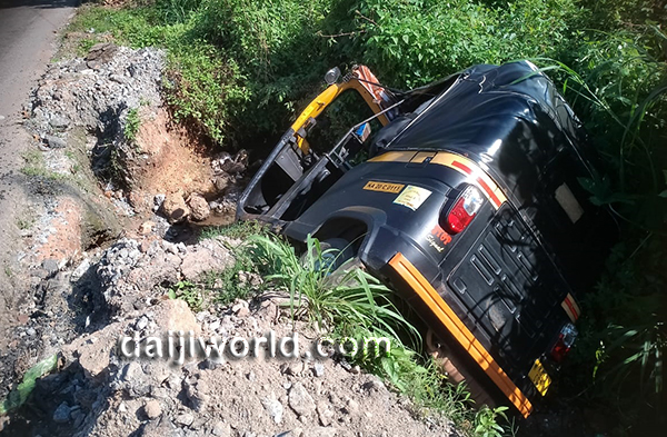 Though the roadsides have been levelled, a proper drain has not been constructed, leading to the mishap. The auto overturned in the opposite direction and was completely damaged.