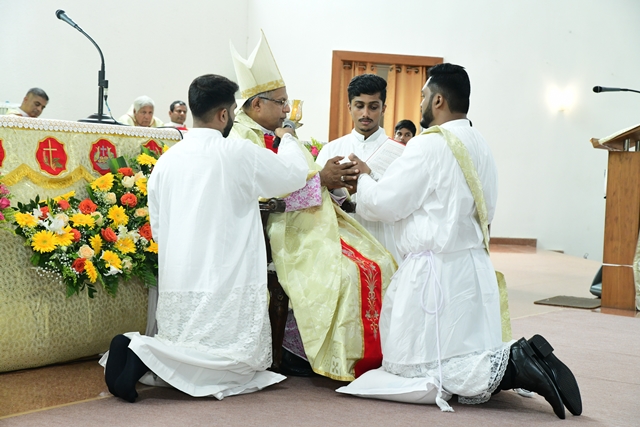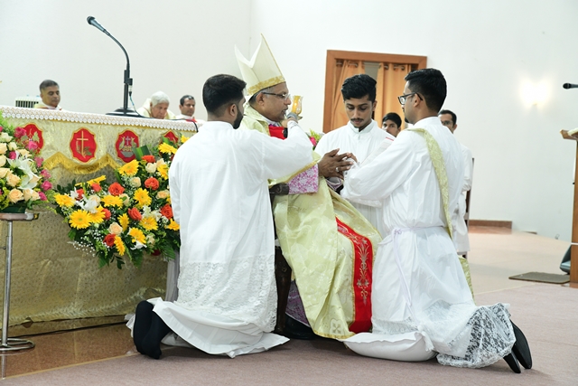 Fr Leston Lobo and Sch Rudolf D’Souza prepared the deacons for the ordination ceremony with the beautiful liturgy.
