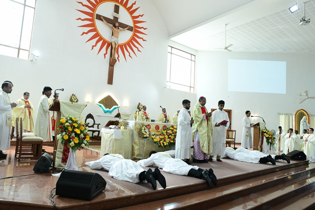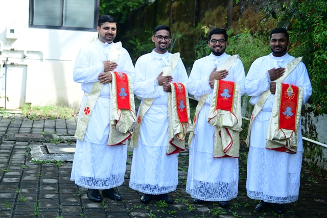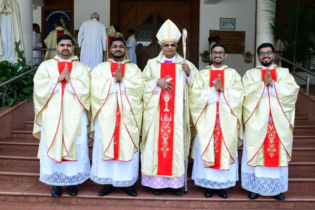 Mangaluru, Oct 4: Four Jesuit deacons were ordained priests by Rev Dr Peter Paul Saldanha, Bishop of Mangalore, on Saturday, October 4, in the Divine Mercy Church, Fatima Retreat House.