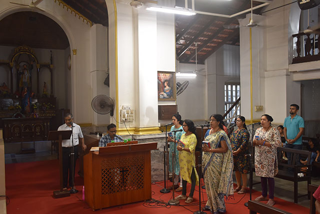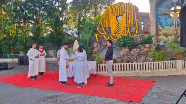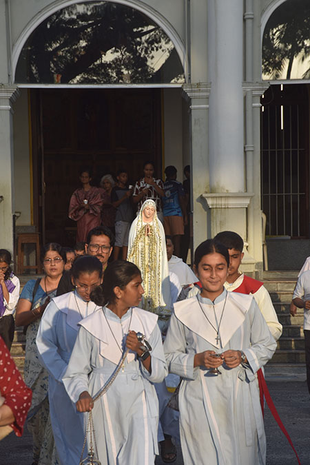 The Rosary was led by Fr Meckenzie Mendonsa, assistant parish priest of St Dominic Church, Ashoknagar, along with Fr Vivek Pinto and Fr Ozmond D’Souza. The parishioners actively participated, responding to the prayers with deep faith and reverence.