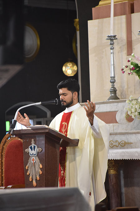 The evening began with a Holy Mass, celebrated by Fr Vivek Pinto as the main celebrant. In his inspiring homily, Fr Vivek highlighted the power of the Holy Rosary as a prayer of peace, love, and family unity. He encouraged the faithful to make the Rosary a part of their daily lives, drawing strength and blessings from Mother Mary’s intercession.