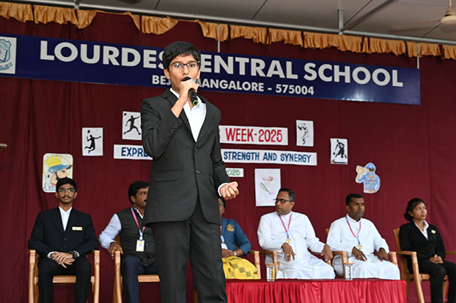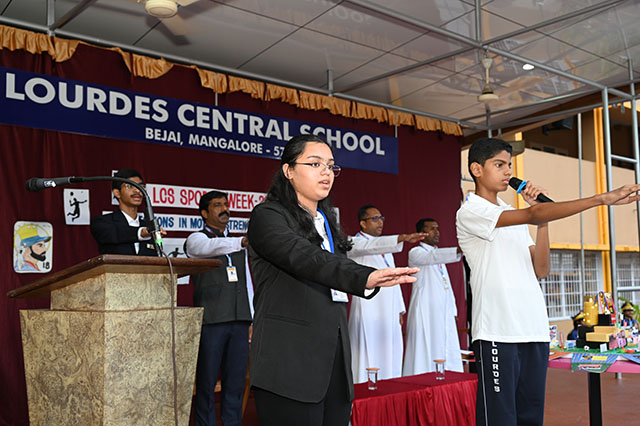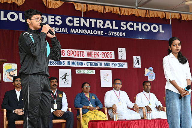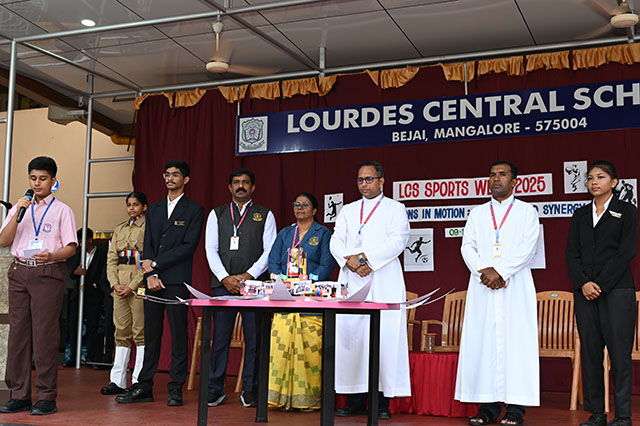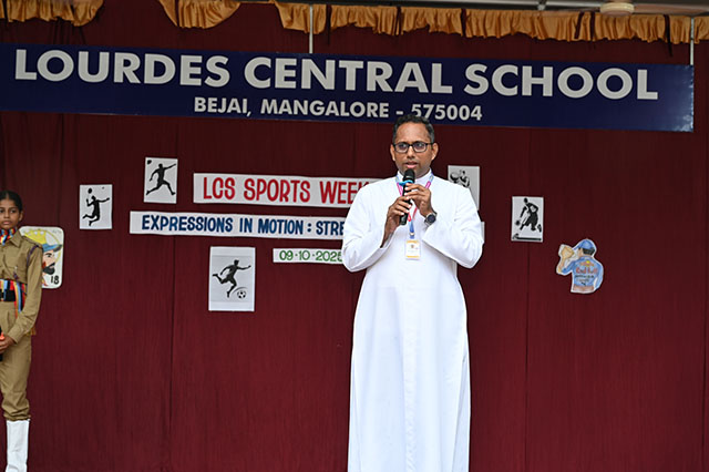 The principal, Fr Johnson L Sequeira, addressed the gathering on the occasion of the inauguration of LCS Sports Week 2025. In his message, he emphasized that while winning is indeed memorable, the ability to rise after a fall is itself a true mark of achievement. He congratulated all the students and urged them to participate in Sports Week 2025 with joy and enthusiasm.