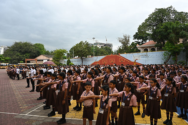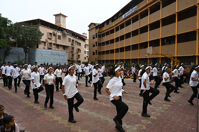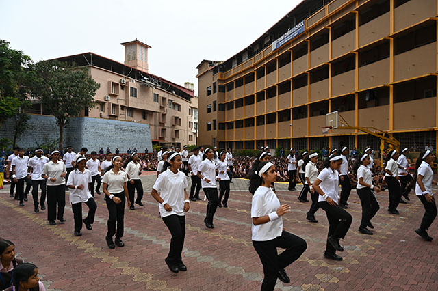 The centrepiece was wonderfully designed and crafted by Shaun Moraes of class VIII, who also offered a glimpse of its intricate details. The students took the Sports Week pledge, led by Raiden of class IXD, to affirm their commitment to teamwork, discipline and the true spirit of sportsmanship. Aadhya Shetty and Rhea Uchil of class IX B gave a glimpse of the significance of Sports Week and engaged everyone with their lively and interactive dialogue. As they say, ‘Aerobics is the art of moving your body with energy, rhythm, and joy’, the students of class IX displayed lively aerobics’ performance set to music. Up next, was a captivating skit titled ‘Together We Rise’, showcasing teamwork, perseverance, and the spirit of unity that motivated the students to achieve more, both on and off the field.