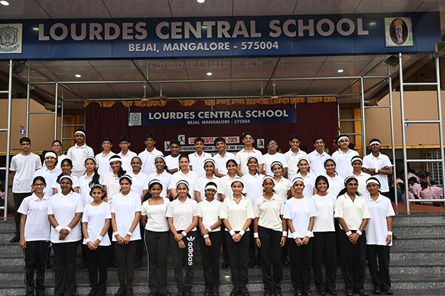Mangaluru, Oct 9: The LCS Annual Sports Week 2025 was celebrated at Lourdes Central School on the theme ‘Expressions in Motion: Strength and Synergy’ on October 9 in the School Ground. The celebration began with the proud entry of the school band, setting the rhythm of the day. Following them were the house captains Pranjal B of opal house, Jemimma Karkad of coral house, Jaden Saldanha of jade house, and Tanusha Malli of amber house, carrying their house flags high with pride and honour. They were joined by our NCC Pilots – Shiv Sorake, Nireekshith U P, Royston Karkada, Darlish D’Souza, Rhea Uchil, and Sinchana Shetty of classes VIII and IX – carrying the School Flag and marching with discipline and confidence, symbolizing strength and responsibility.