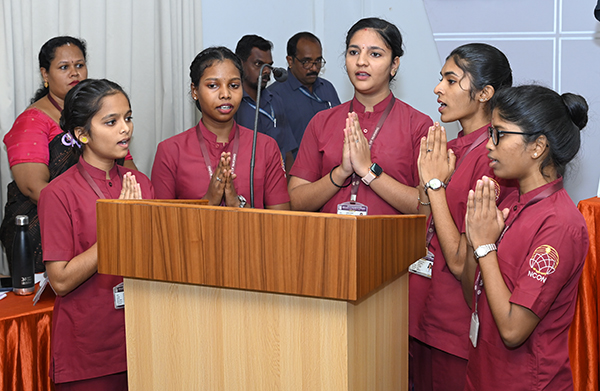 The auspicious occasion began by invoking God’s blessings. The welcome address was delivered by Roshani Rodrigues, principal of Niramaya College of Nursing, Bantakal.