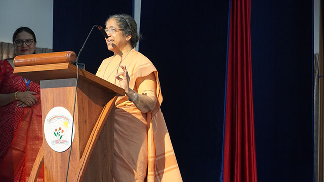 Linking her message to the platinum jubilee theme — ‘Transformative Education for the Fullness of Life towards Human Fraternity’, she called upon the staff to continue the legacy of excellence built through decades of commitment. She also shared a thought-provoking story illustrating humility and fraternity, asking, “How do you know that night has gone and the light has dawned?” — and answering, “When you can look into the eyes of everyone and say, this is my sibling.”