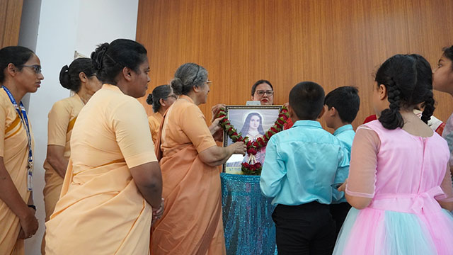 A moment of reverence followed as the dignitaries garlanded the portraits of St Therese of Lisieux, the heavenly patroness of the school, and the father founder, Servant of God RFC Mascarenhas. Students then offered flower petals at the feet of the patroness, expressing their devotion and gratitude.