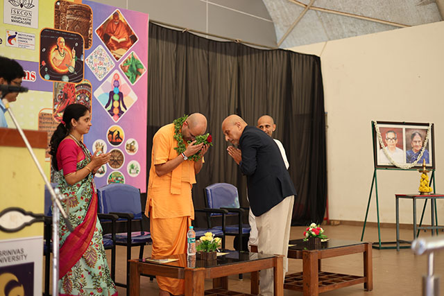 The event also witnessed the presence of Sri Sutapa Prabhu (member, managing committee, ISKCON Kudupu, Mangaluru), Sri Ashraya Narayana Prabhu (ISKCON Dwaraka, New Delhi), Prof Thrivikram Prabhu (NSS coordinator), heads of departments, faculty members, staff and students of SUIET and SIAHS.