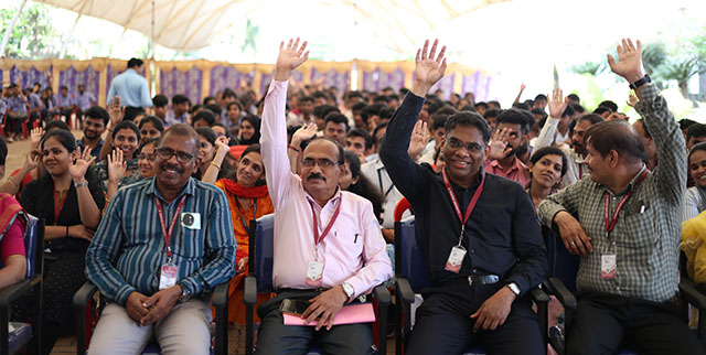 Following his speech, Amogh Lila Das Prabhu Ji engaged in an interactive session with students and faculty, addressing their queries and sharing insights.