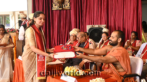 Delivering the presidential address, Sri Vishwavallabha Theertha Swamiji of Sode Vadiraja Math inspired the graduates with his words of wisdom. He spoke about the co-existence of positive and negative experiences in life, emphasising the importance of focusing on the positive and embracing challenges with acceptance. He urged the graduates to excel with a positive mindset, value the contributions of their parents and teachers, and make them proud through their accomplishments.