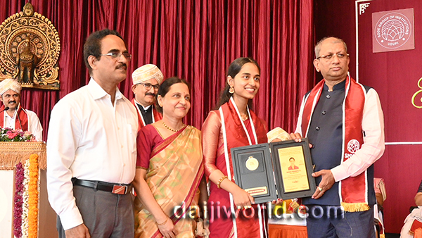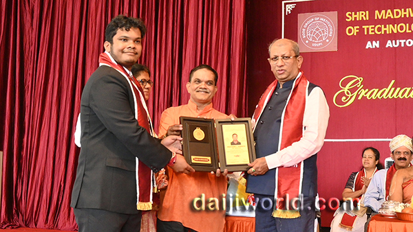 Pratham L Kamath and Nidhi Prabhu K were felicitated on this occasion for receiving the University Gold medal from VTU, Belagavi. Pratham L Kamath, Sameeksha Nayak, Vinay Kumar, Shreelaxmi Kamath, Chaitanya Anant Nilekani, and Bhargavi were also felicitated with gold medals for being the batch toppers from AI&DS, AI&ML, civil, computer science, electronics and communication and mechanical engineering branches respectively.