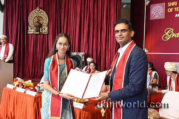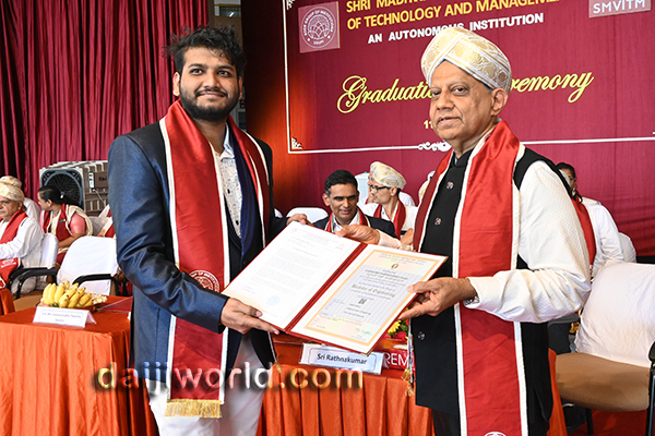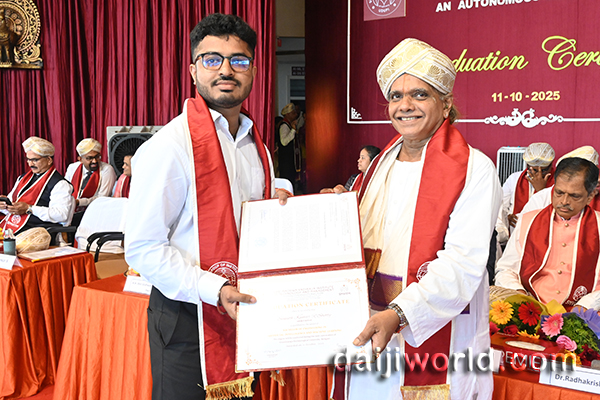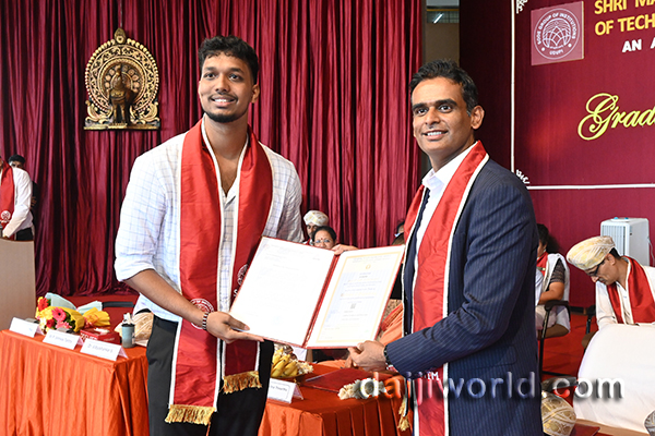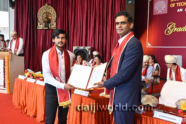 Speaking on the occasion as the chief guest, Dr Vidyashankar S, vice chancellor of VTU Belagavi, inspired the graduates by emphasising the importance of responsibility and continuous learning in emerging fields such as AI, Quantum Computing, Biotech, and Semiconductors. He highlighted India’s position in advanced technologies and stressed the role of engineers in elevating the nation’s global standing and realising the vision of “Viksit Bharat.” He encouraged students to go beyond the classroom, upskill their knowledge, develop a strong mindset, stay focused, and recognise the significance of startups in driving growth.