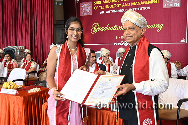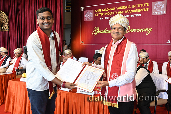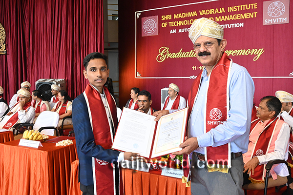 Udupi, Oct 11: Shri Madhwa Vadiraja Institute of Technology and Management (SMVITM), Bantakal, held its 12th Graduation Day ceremony on October 11, at the college premises.