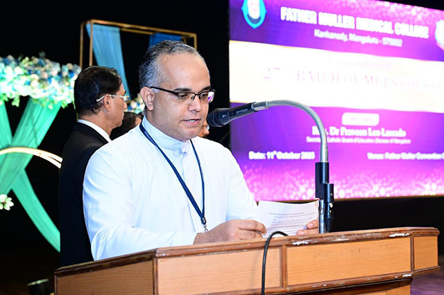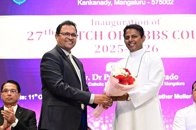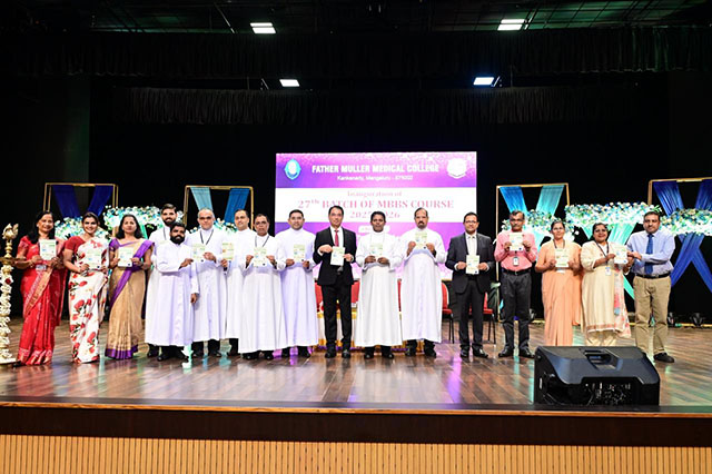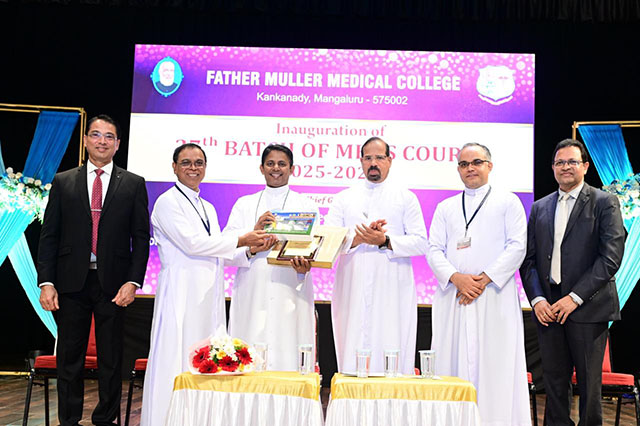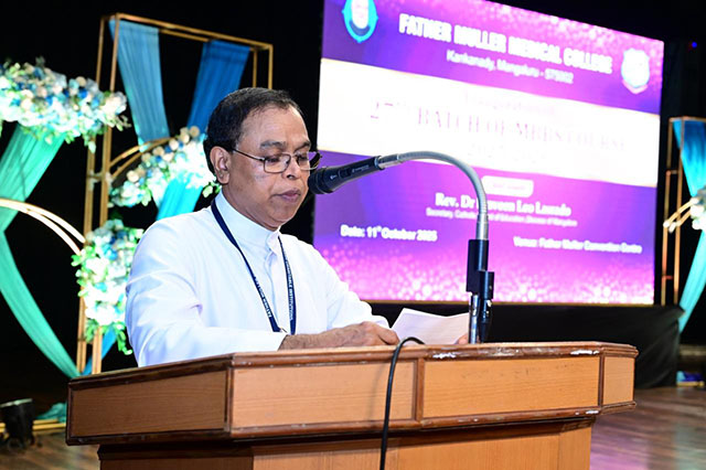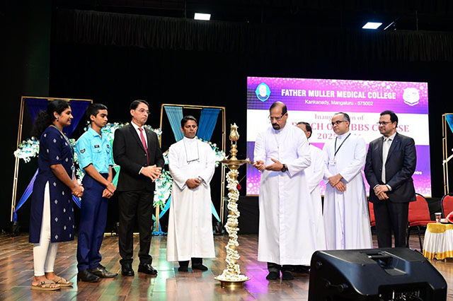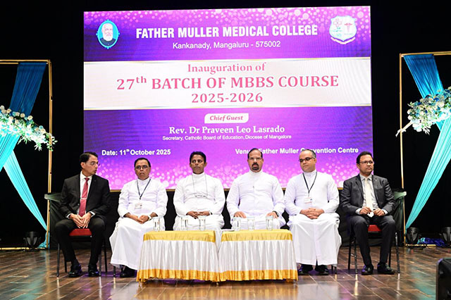 Mangaluru, Oct 11: The commencement of the academic year for the 27th batch of MBBS students (2025-26) at Father Muller Medical College (FMMC) was held on October 11 in a solemn and inspiring ceremony. The event was presided over by Fr Faustine Lucas Lobo, director, Father Muller Charitable Institutions (FMCI), and graced by Dr Leo Lasrado as the chief guest.