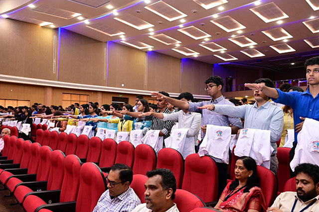 The highlight of the event was the white coat ceremony, symbolising the formal induction of the new students into the medical profession. Prof Dr Nagesh K, head of the medical education unit and a doctor in forensic medicine, administered the white coat oath as per the National Medical Commission (NMC) guidelines. As the students donned their first white coats, they beamed with pride, stepping into a noble journey of healing and compassion. The Father Muller Institutional Anthem was then sung with great enthusiasm, marking a moment of institutional pride and unity.