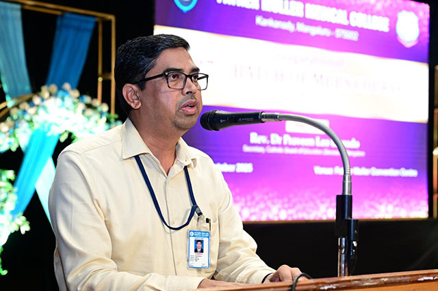 He emphasised that Father Muller Medical College continues the divine mission of healing, entrusted by god and not driven by corporate motives. Dr Lasrado shared a touching anecdote of a village doctor, Dr Suji Narayana, whose compassionate care and reassuring smile brought healing as much as his injections did—reminding the students that empathy remains the soul of the medical profession.
