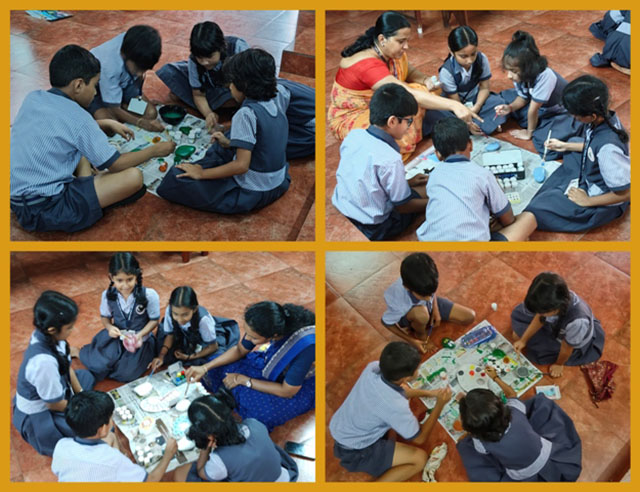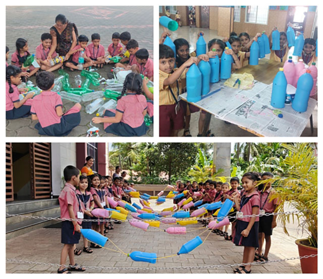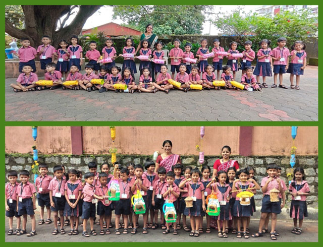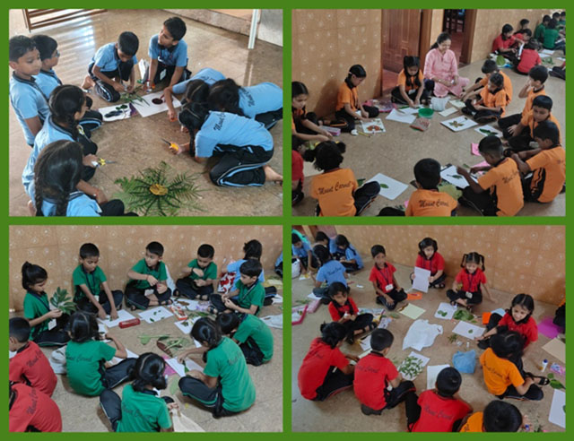 Grade II students engaged in leaf art, using leaves to make animals, flowers, and designs. The students of grade III participated in a stone painting activity, creatively depicting nature and living creatures. Grade IV children made bird feeders using eco-friendly materials, learning about compassion and responsibility towards nature.
