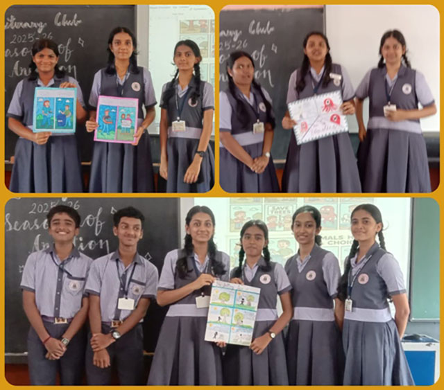 The Young Global Citizens Club held a session on human–wildlife conflict by conservationist Bhuvan, focusing on coexistence and community responsibility. The Literary Club members developed eco comic strips with themes like “Plastic Monster” and “The Talking Tree”, creatively spreading environmental awareness. '