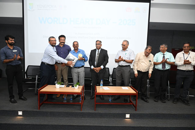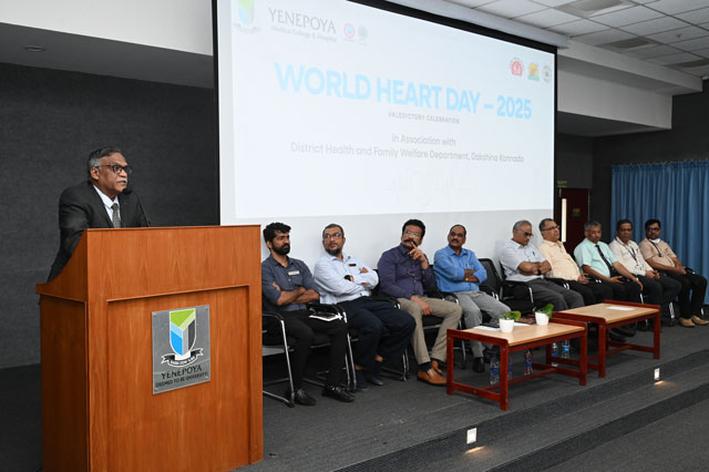 Delivering the keynote address, Dr Nagaraj Shet, assistant medical superintendent, highlighted Yenepoya’s continuous efforts in promoting cardiac health. He notified that the patients can avail comprehensive cardiac screening throughout the year at an affordable cost of around Rs 1500. He also shared that in the eight years of its Cath Lab’s establishment, the hospital has successfully performed over 13,000 cardiac procedures, including more than 4,000 angioplasties, with 80–85% conducted completely cashless under government and semi-government health insurance schemes. He further informed that the Heart Failure Clinic, operational every Saturday, lays the groundwork for Yenepoya’s forthcoming plans of establishing a heart transplant programme at Yenepoya Medical College Hsopital.