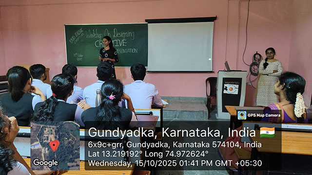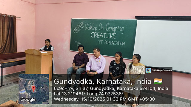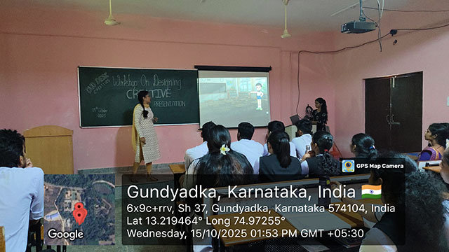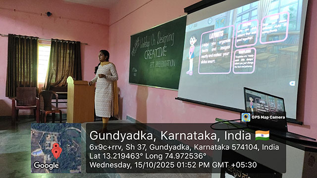 Karkala, Oct 16: The Internal Quality Assurance Cell (IQAC) and R&D Cell of Manjunatha Pai Memorial Government First Grade College of Professional and Business Management, Karkala, organised a workshop on designing creative PPT presentation on October 15 at the MCom Lecture Hall. The session was conducted by Sahana S and Sameeksha, founders of Duo Desk Creatives, Karkala.