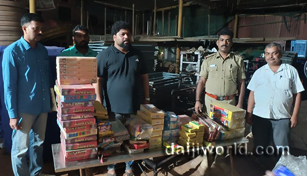 Udupi, Oct 16: Police in Udupi district conducted raids at multiple locations and seized a large quantity of firecrackers that were being stored illegally and unsafely.