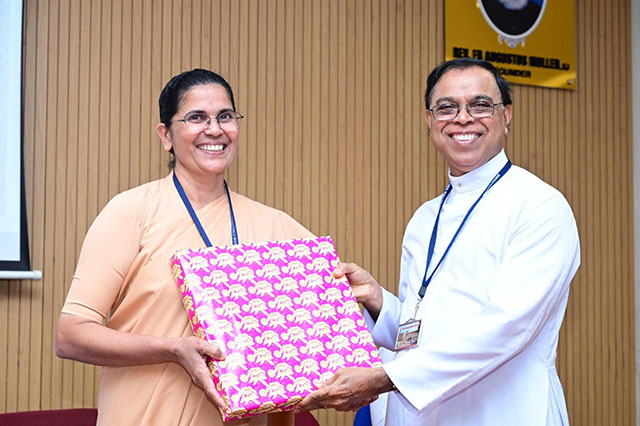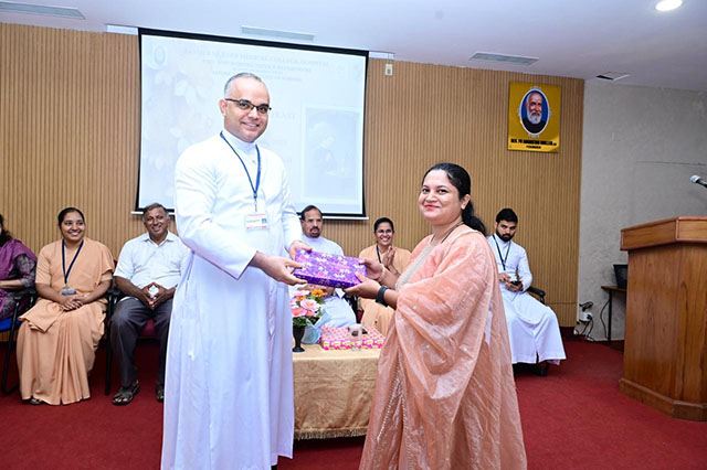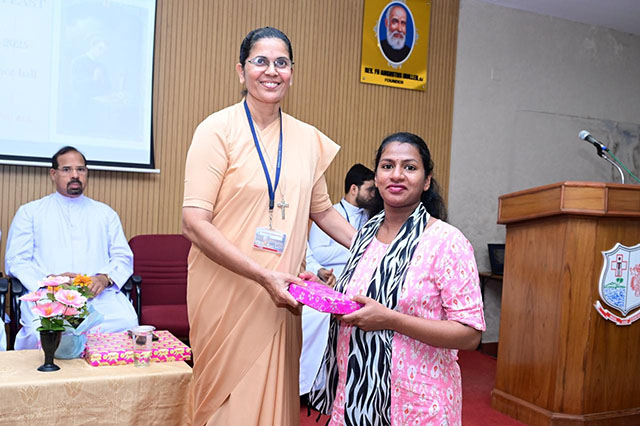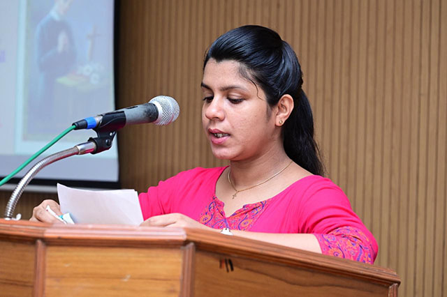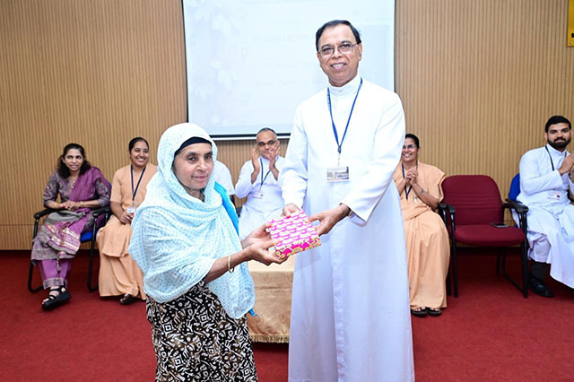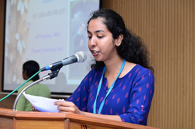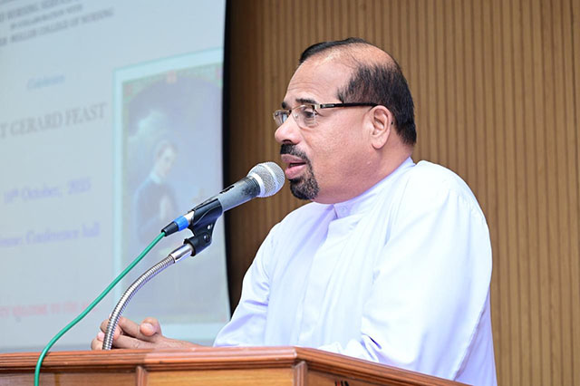In her address, Sr Dhanya Devasia shared a moving personal testimony of witnessing the miraculous intercession of St Gerard during a complicated labour case at Father Muller Hospital, which saved both the mother and the child.