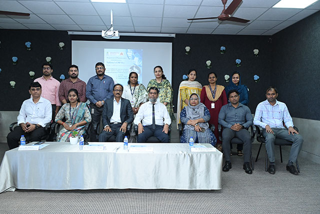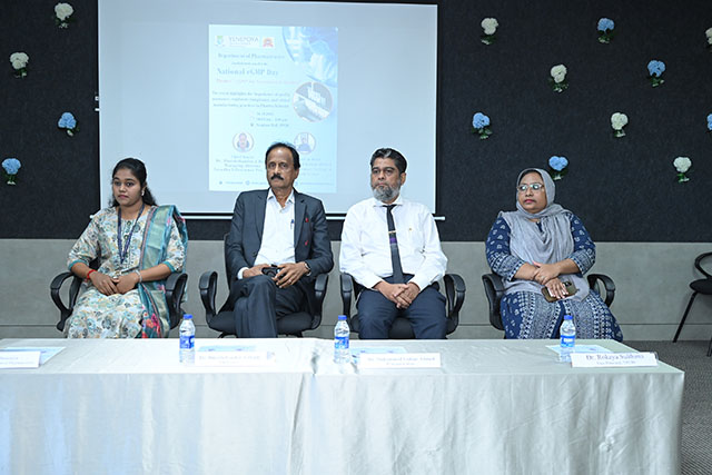 The event was graced by Mohammed Gulzar Ahmed, principal; Dr. Rokeya Sultana, vice principal; and Dr Soumya, Head of the Department of Pharmaceutics, along with faculty members and students. Also present were Mithun B Shetty, general manager, and Sushil Kumar, QA manager, from Vasudha Lifecare Sciences Ltd., who shared their perspectives and experiences from the pharmaceutical industry, enriching the session with valuable insights.