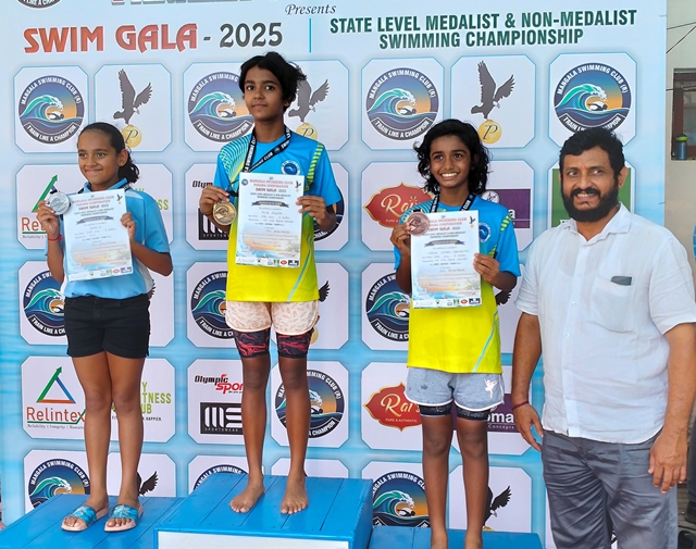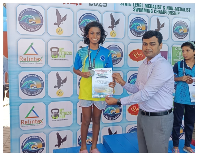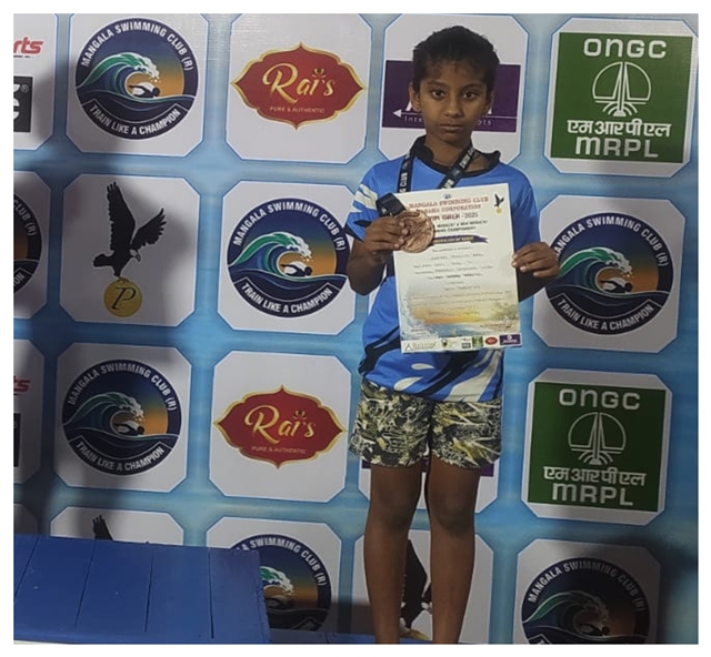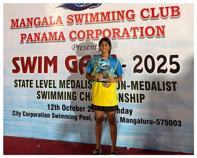 In the Swim Gala 2025 – state-level medalist and non-medalist swimming championship, organised by Mangala Swimming Club and conducted at City Corporation Swimming Pool, Mangaluru, on October 12, the young swimmers of the school made waves with their stellar performances - Alita D'Souza of grade V D claimed 1st place in 50m butterfly, 50m backstroke, 50m Freestyle, and 4x50m relay medley and freestyle, earning her the title of individual champion.
