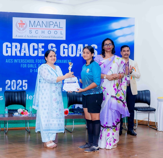 In the AICS Interschool Girls’ Football Tournament organised by Manipal School, and held on October 14 at Arena Sports Ground, Attavar, the under-14 Girls’ team of MCCS emerged as the winners. Rihanna Lobo of grade V C was awarded the best striker award and Tisha Balipa of grade VII D adjudged the best goalkeeper.