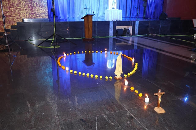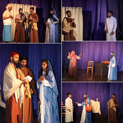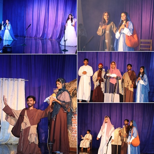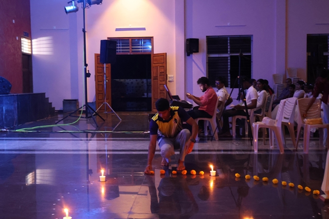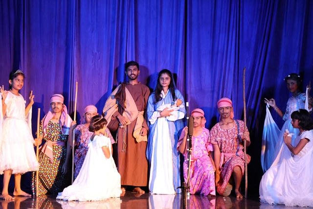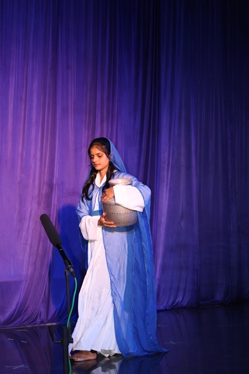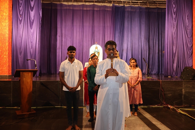 The evening commenced with the Rosary, led with deep reverence, as glowing candles illuminated the surroundings, creating a serene atmosphere of faith and reflection. It was followed by a spiritual skit portraying the joyful mysteries of the Rosary, beautifully enacted by the youth, reminding everyone of Mother Mary’s unwavering trust in God’s divine plan.