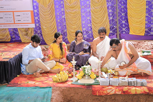 Mangaluru, Oct 24: The Bhoomi Pooja and brochure launch ceremony of ‘Shreka Pride’, a premium residential project by Shreka Builders & Developers, was held with devotion and grandeur on Friday October 24 at Bejai–Kapikad, opposite Hotel Ocean Pearl.
