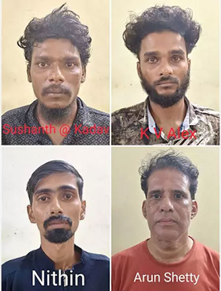 Those taken into custody include Sushanth alias Kadavi, 29, a resident of Kaanaa, Surathkal; K V Alex, 27; Nitin, 26, and Arun Shetty, 56, all from Surathkal, who reportedly provided shelter to the accused.