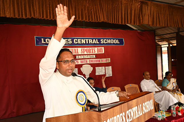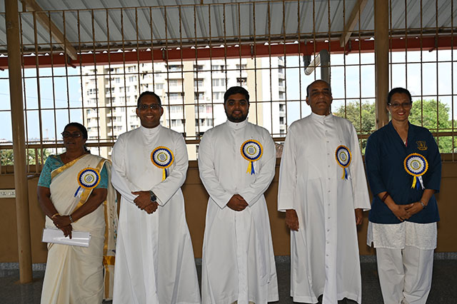 The dignitaries for the Sports day were school manager Fr John Baptist Saldanha, principal Fr Johnson L Sequeira, chief guest Fr Roydon Misquith and vice principal ma'am Anita Thomas.