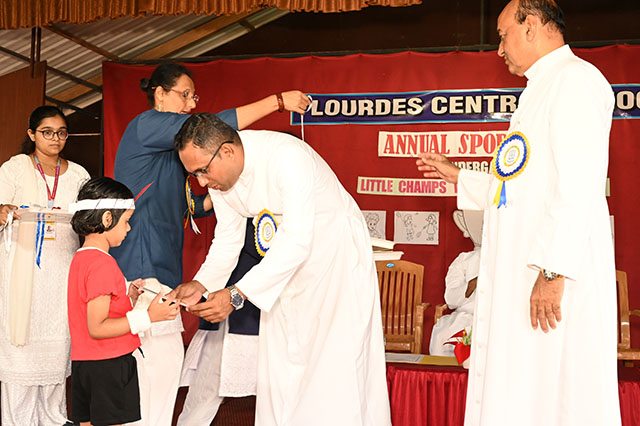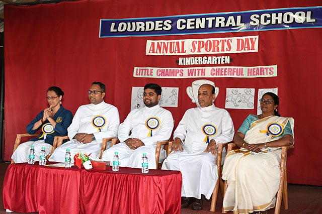 Mangaluru, Oct 27: The Annual Sports Day for kindergarten was held with zeal and enthusiasm at the Lourdes Central School on October 25. The programme commenced with the entry of dignitaries followed by prayer song sung by the KG2 students.