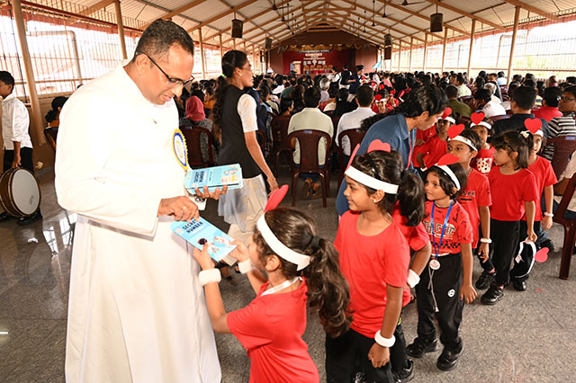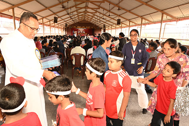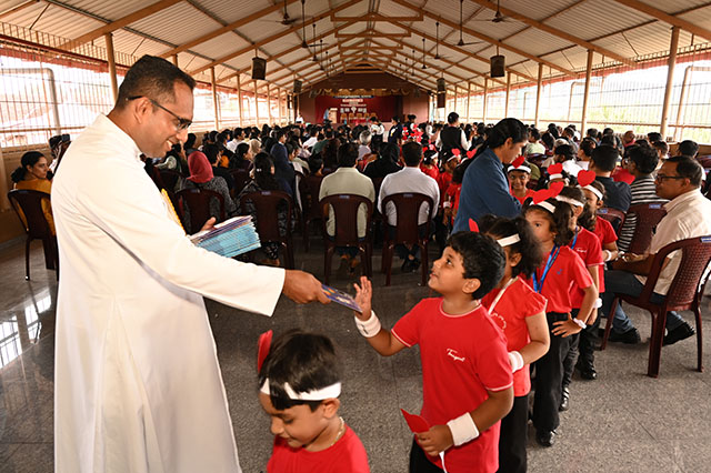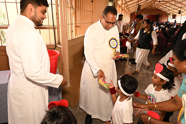 The children left the venue with happy hearts by receiving giveaways from Fr principal.
