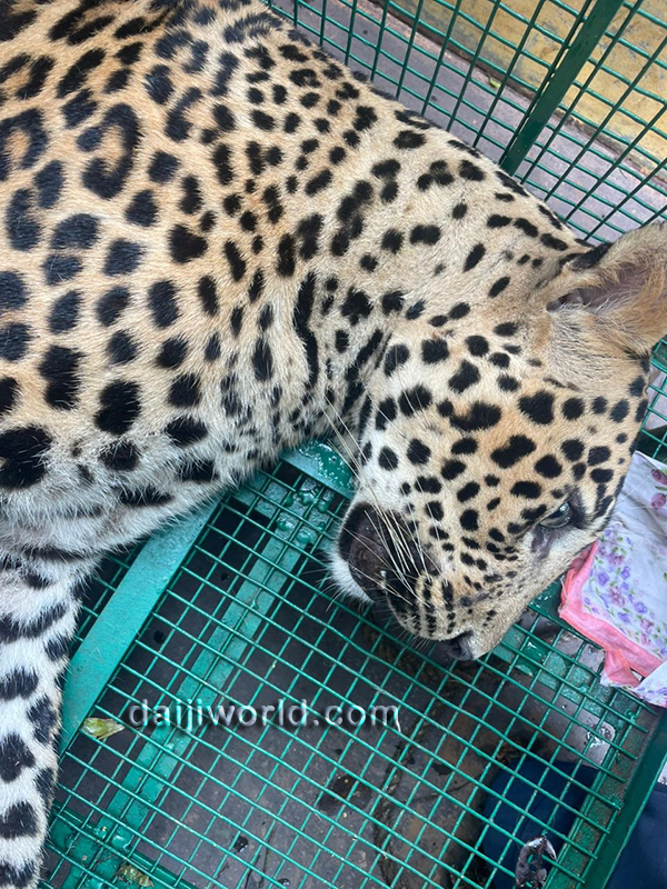 The leopard, which was entangled and struggling to free itself, was first spotted by local residents. As the injured animal was aggressive and in distress, no one dared to approach it.