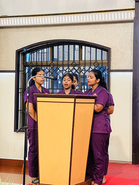 Dr Diana Lobo, principal of Milagres College of Nursing, introduced the chief guest, Dr Vivian Roshan D’Almeida, unit chief, Department of Orthopaedic Surgery, Father Muller Medical College Hospital, Mangaluru.