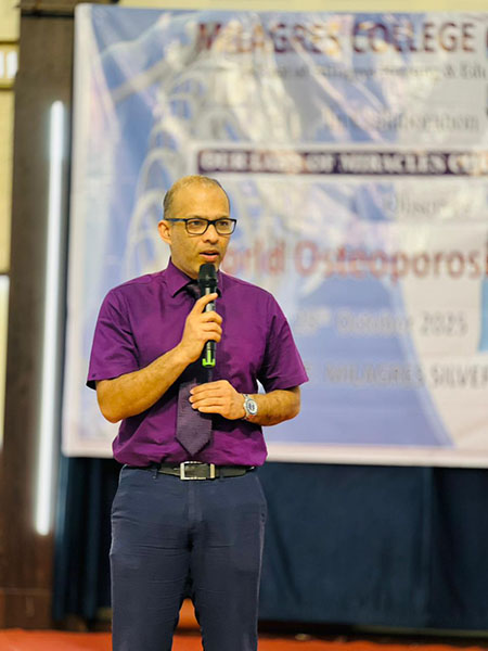 Dr D’Almeida delivered an insightful keynote address on osteoporosis, elaborating on its causes, risk factors, and preventive measures. He emphasised the significance of regular physical activity, a balanced diet rich in calcium and vitamin D, and timely health check-ups to prevent bone-related disorders.