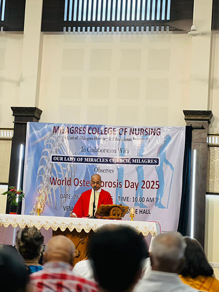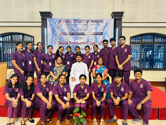 Mangaluru, Oct 28: Milagres College of Nursing, in association with Our Lady of Miracles Church, organised a meaningful and impactful awareness programme on World Osteoporosis Day 2025. The event aimed to educate senior parishioners on bone health, the importance of maintaining strong bones, and preventive strategies against osteoporosis.