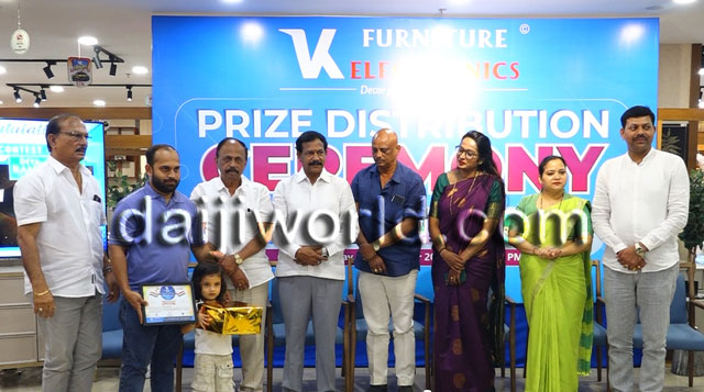 Mangaluru, Nov 2: A grand prize distribution ceremony was organised by VK Furniture & Electronics, one of the leading establishments in Mangaluru, at its Kallapu showroom in Thokottu on Saturday, November 1. The event was held to felicitate the winners of various online and photo competitions conducted during Independence Day, Krishna Janmashtami, and Navaratri celebrations.