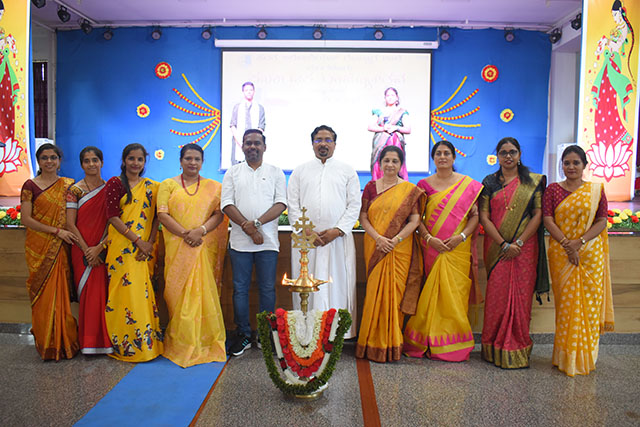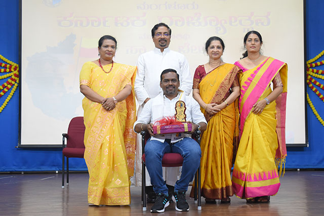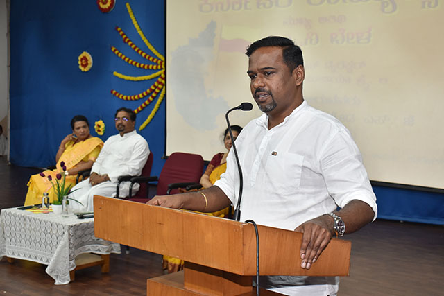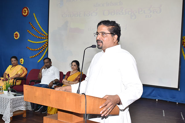 Principal Fr Rohan D Almeida SJ, who presided over the function, spoke about the greatness of the Kannada language and the significance of the yellow and red colours representing purity and sacredness. He also explained the meaning of the State Anthem and encouraged everyone to work together to make Karnataka a garden of peace.