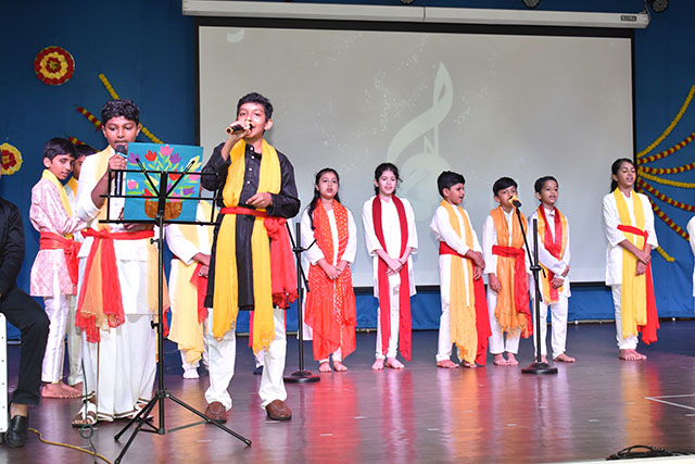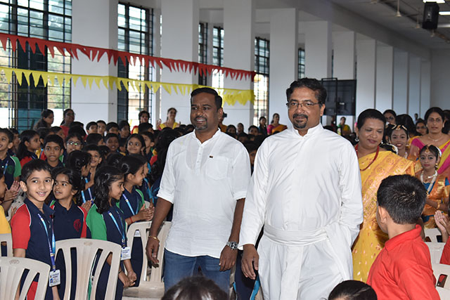 Dwithi H L of class IV spoke on the importance of the day. The programme was compered by Avani, Yashik, Samarth, and Eshanvi of class VII, with Avaneesh delivering the welcome address and Risha Kotyan proposing the vote of thanks. The event was coordinated by the Kannada language teachers.