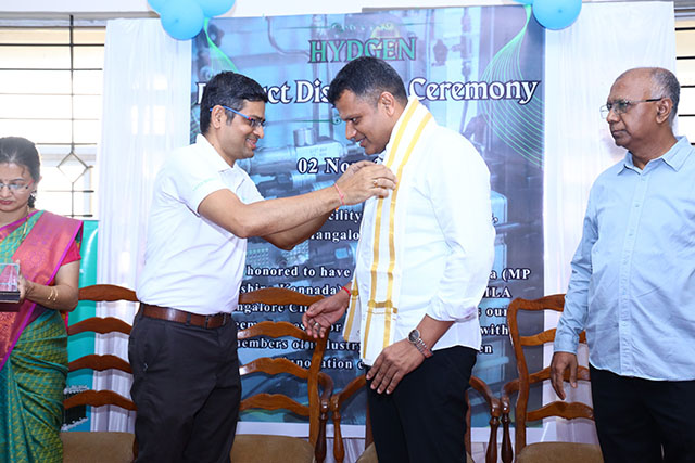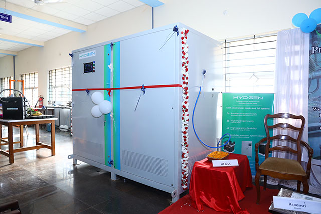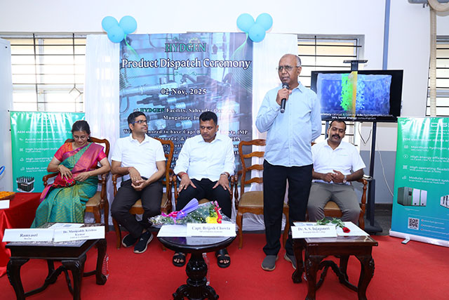Cap Brijesh Chowta, member of parliament, Lok Sabha from Dakshina Kannada Lok Sabha constituency was unveiled the first HYDGEN electrolyser unit manufactured at local HDGEN facility at Sahyadri campus, Mangaluru. Dr Manipaddy Krishna Kumar (COO), Ramyasri Doddamani Srivastava (director), Dr SS Injaganeri, principal Sahyadri College of Engineering & Management (Autonomous) Mangaluru, members of industries and the hydrogen innovation community where present in the programme.