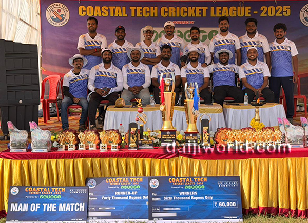 Udupi, Nov 4: The Coastal Tech Cricket League 2025, a first-of-its-kind tournament bringing together IT professionals from Udupi and Mangaluru, concluded successfully after two days of exciting matches at the Rajiv Gandhi Stadium, Hejamadi.